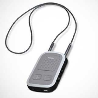 Um controle remoto discreto que tem as funções essenciais para o controle dos aparelhos auditivos pelo usuário